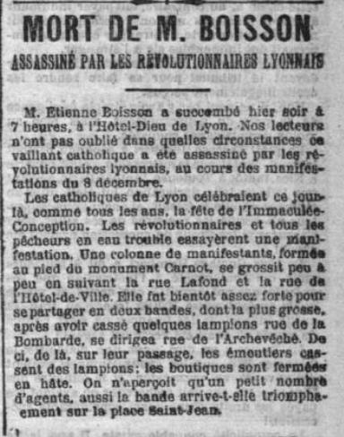 L’extrême gauche assassinait déjà à Lyon en 1903 : le cas du catholique Étienne Boisson