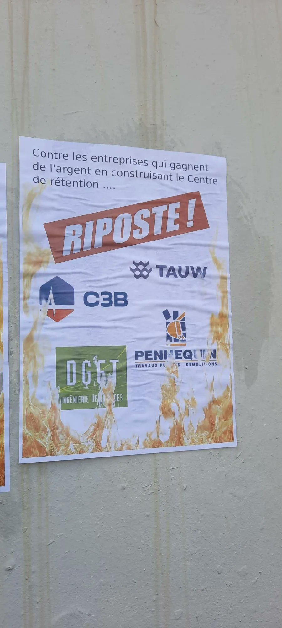 En marge de cette manifestation, des affiches ont été collées dans plusieurs endroits de la ville. Elles visaient les entreprises retenues pour la construction du CRA, à l’image de Pennequin BTP, qui s’est pourtant contentée de répondre à un appel d’offres public du ministère de la Justice.
